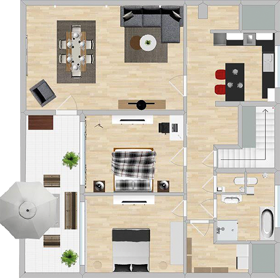 - Vollmöblierte Wohnung mit modernem Interieur und Sonnenterrasse von 21 qm